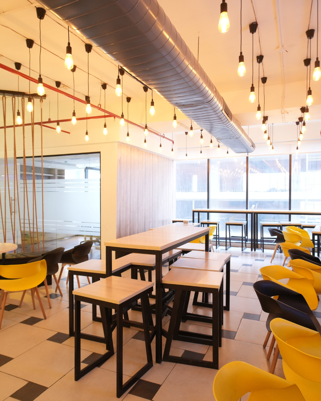 Professional setup with a great cafeteria and collaborative spaces.